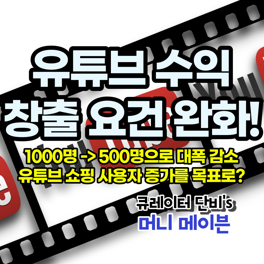 | 유튜브 수익창출 조건 1000명->500명 변경 완화!(2023.06 소식) - 사전 YPP 승인 (유튜브 쇼핑, 팬 펀딩) (0) | 2023.06.15 |