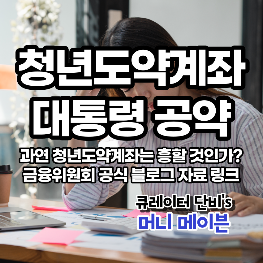 | 2023 청년도약계좌(대통령 공약 상품) 출시 - 금융위원회 공식 블로그 상세 자료 링크(요건, 신청방법, 기여금, 한도 외) (0) | 2023.06.13 |