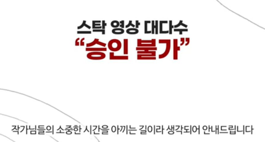 ** 주의 인터넷의 유료 영상 및 스탁영상, 무료영상 등은 대다수 승인불가 통보를 받을 것.