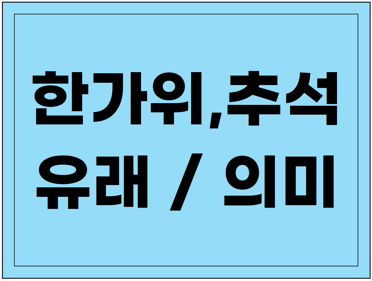 - '한'은 '크다'는 뜻이고, '가위'는 '가운데'를 의미합니다. 즉, '한 해의 가운데에 있는 큰 날'이라는 뜻으로 해석할 수 있습니다.